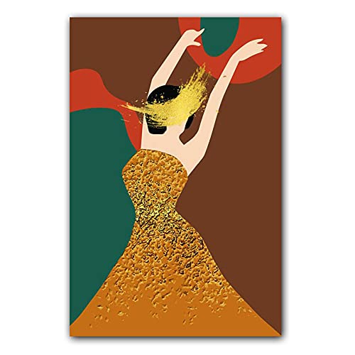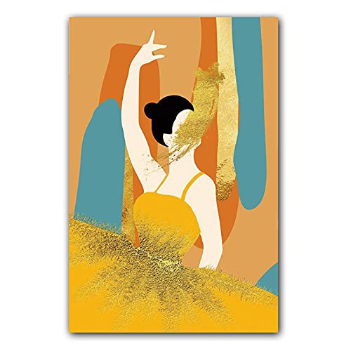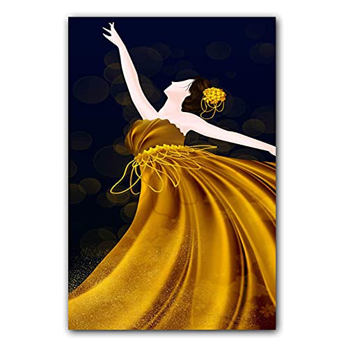 Figuur Olieverf Goud Rok Danser Poster Abstract Canvas Schilderij Woonkamer Gang Woondecoratie Muurschildering 60x80cm…