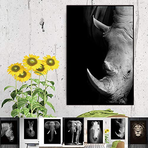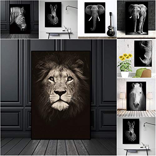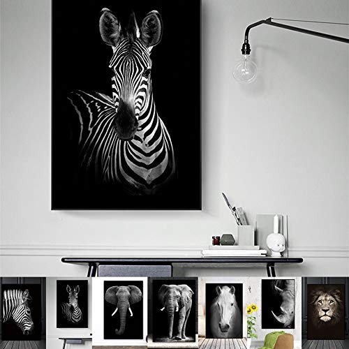 Dierlijke Canvas Schilderij, Zwart en Wit Grijs Zebra Olifant Leeuw Hoofd Portret Muur Art Schilderen Foto’s voor Huis…