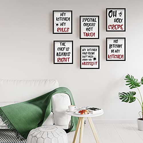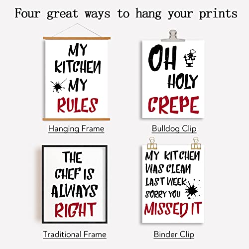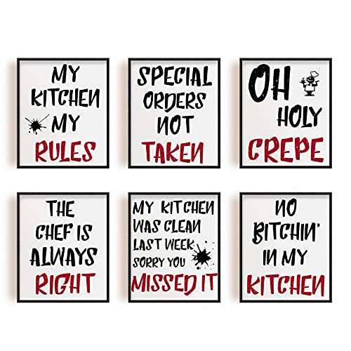 Canvas Wall Art: MIJN KEUKEN MIJN REGELS, SPECIALE BESTELLINGEN NIET GENOMEN, OH HOLY CREPE, GEEN BITCHIN IN MIJN KEUKEN, DE CHEFF IS ALTIJD GORDIG, MIJN KEUKEN WAS SCHOON LAATSTE WEEK Sorry dat je het mist.