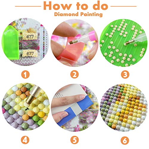 Super eenvoudig om het prachtige diamantschilderij te maken, het afgewerkte schilderij wordt uniek en voortreffelijk. Deze 5D DIY diamant schilderij kits kunnen uw hands-on vermogen verbeteren en een goede hechtingservaring zijn voor het gezin. Met premium hoog helder schilderdoek en glanzende diamanten ronde boren, is het 5D diamant schilderij waterdicht, verdikkend, zelfs textuur en niet gemakkelijk te vouwen. Schitteren in het licht, is de meest populaire doe-het-zelfdecoratie. Ouderen en kinderen zijn geschikt.