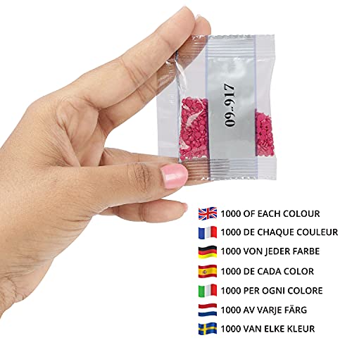 60.000 VERVANGINGSDIAMANTEN: Inbegrepen in deze set zijn 60.000 diamanten in 60 kleuren. Elke kleur heeft 1000 stuks en wordt voorverpakt geleverd. Er zijn ook 3 vellen van 40 individuele stickeretiketten (120 etiketten in totaal). De diamanten kralen zijn gemaakt van hoogwaardig kunststof en hebben een diameter van 2,8 mm, de maat die het meeste bij diamond dot schilderen wordt gebruikt. De kralen zijn BPA-vrij en niet giftig.