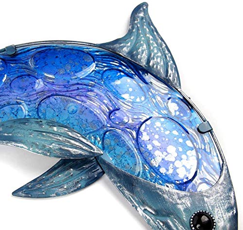 Jumping dolfijn – gemaakt van hoogwaardig ijzer en glas. De metaalscheur van het frame is duurzaam. Inmiddels creëert het uitstekende handwerk een illusie dat een mooie dolfijn uit het zeeniveau springt
