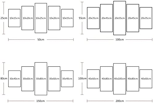 Afmetingen: (10x15cm/4x6in) * 2 stuks + (10x20cm/4x8in) * 2 stuks + (10x25cm/4x10in) * 1st; (20 × 35cm/8 × 14 inch) * 2 stuks + (20 × 45cm/8 × 18 inch) * 2 stuks + (2 stuks) 0×55cm/8×22in) * 1st; (30x40cm/12x16in) * 2 stks + (30x60cm/12x24in) * 2 stks + (30x80cm/12x32in) * 1 stuks; (40x60cm/15x23in) *2 stuks+(40 x80cm/11 5x31in) *2stk+ (40x100cm/15x39in) *1st