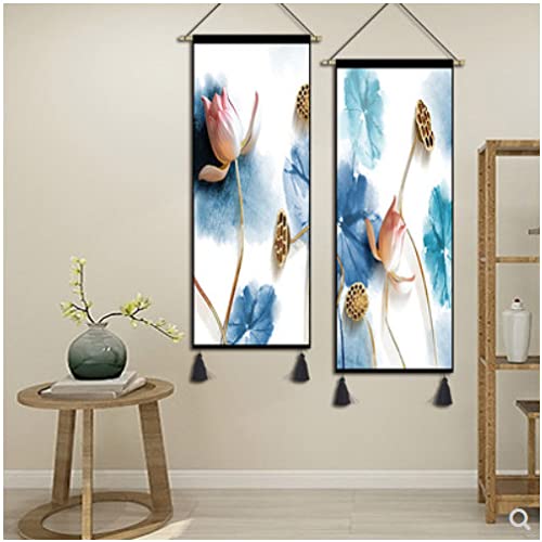 Lotus kwastjes wandtapijt, woonkamer slaapkamer kunst wandtapijten, muur schilderij opknoping vlag 45x120cm