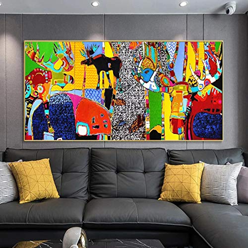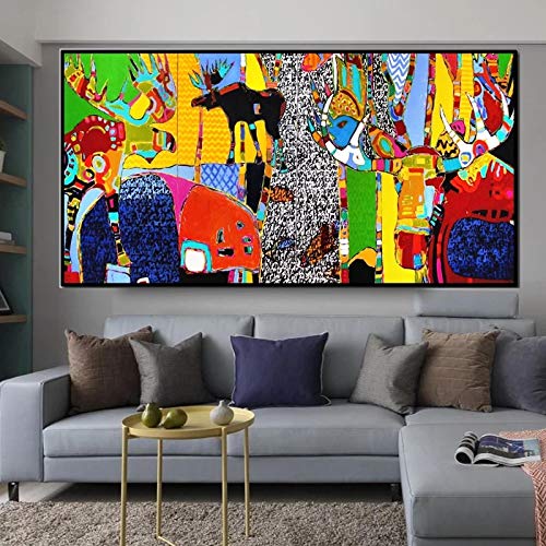 Specification: Abstracte cartoon dier canvas schilderij moderne prints en poster kleurrijke muurkunst foto’s voor woonkamer decor…