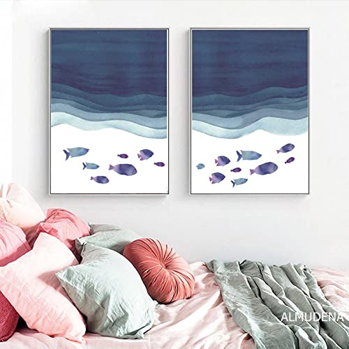 Specification: Cartoon Blue Ocean Fish Group Canvas Schilderij Eenvoudige Kunst Muur Zeegezicht Prints en Posters voor Kinderkamer…
