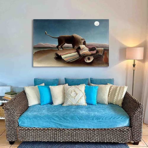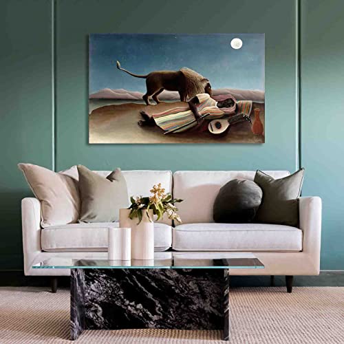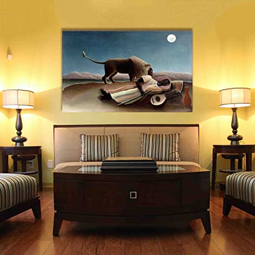 Specification: “De slapende zigeuner” door Henri Rousseau Schilderij Canvasafdrukken Voor Muur Foto’s Thuis Woonkamer Decoratie Moderne Keuken Muurkunst voor Slaapkamerdecoratie (60x95cm, niet ingelijst)