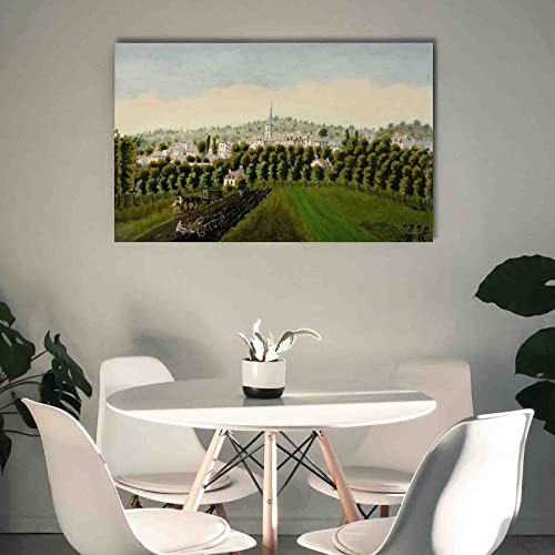 Specification: “Uitzicht op Bodem en MeudonBillancourt” door Henri Rousseau Schilderij Canvasafdrukken Voor Muur Foto’s Thuis Woonkamer Decoratie Moderne Keuken Muurkunst voor Slaapkamer (55x88cm, ingelijst)