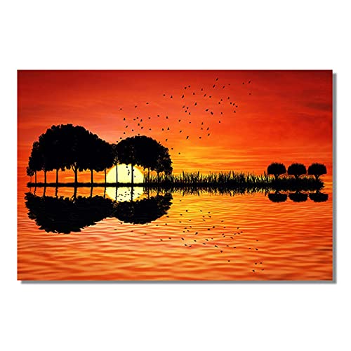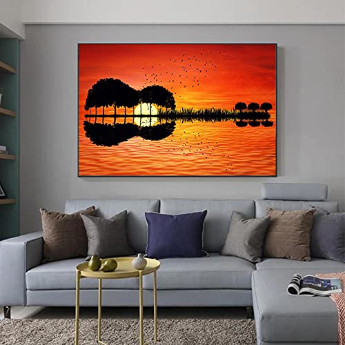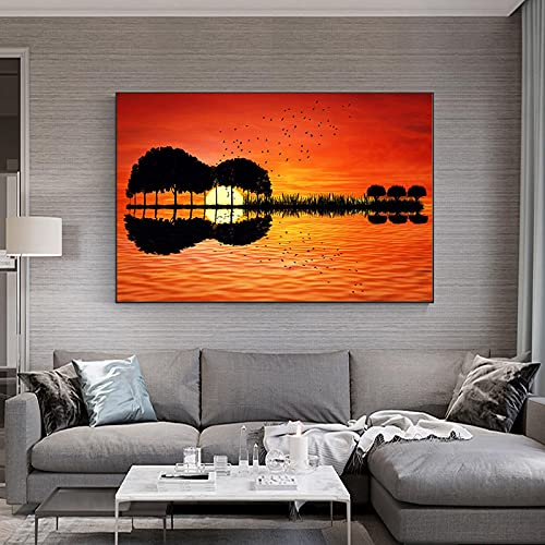 Specification: Zonsondergang Waterreflectie Landschap Canvas Schilderijen Abstracte Muzikale Gitaar Poster en Print Foto voor Home…