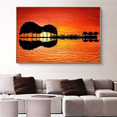 Zonsondergang Waterreflectie Landschap Canvas Schilderijen Abstracte Muzikale Gitaar Poster en Print Foto voor Home…