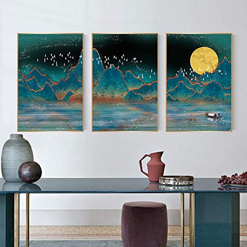 Specification: Canvas Schilderij Berg Water Golven Varen Lake Night Landschap Poster Wall Art Print Foto Woonkamer Home Decor 50×70 cm…