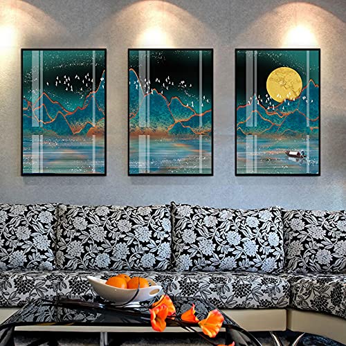 Canvas Schilderij Berg Water Golven Varen Lake Night Landschap Poster Wall Art Print Foto Woonkamer Home Decor 50×70 cm…