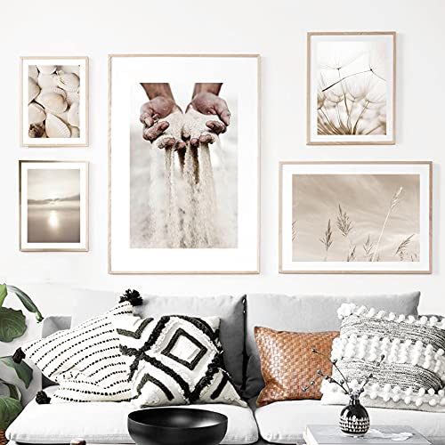 Specification: DRNAIETY Paardebloem riet zand zonsondergang vogel strand Nordic Poster Muur print olieverf woonkamer decoratieve…