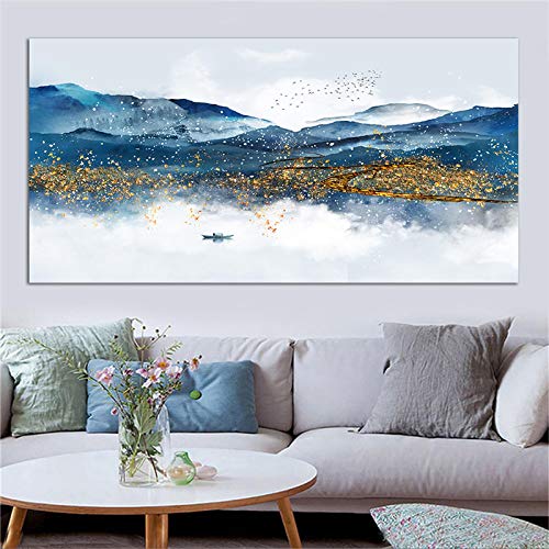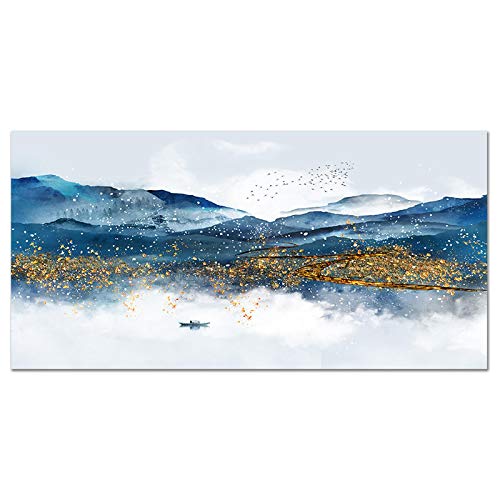Specification: Hedendaagse oversized muurkunst Chinese blauw en gouden berglandschap muurkunst schilderij modern abstract groot beeld…