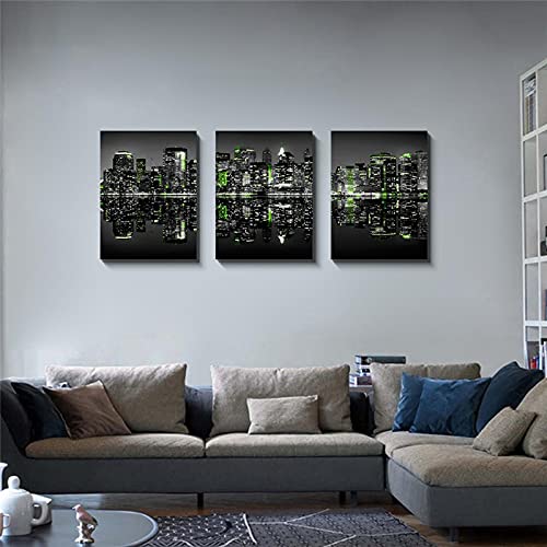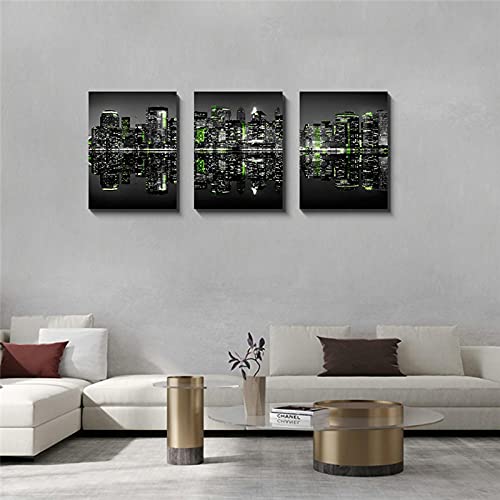 Home Decor Ingelijste Muurkunst Poster en Prints Groen New York Night City Canvas Schilderij Zwart Wit Landschap Foto…