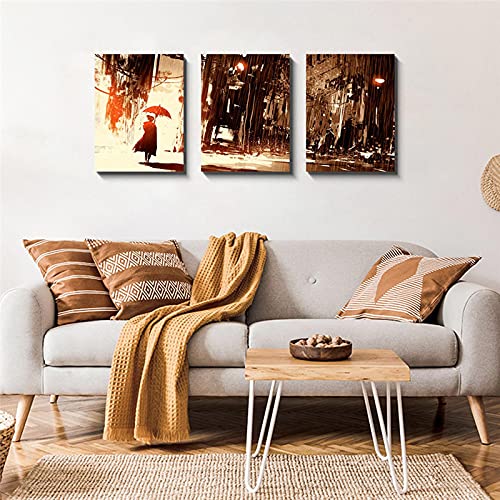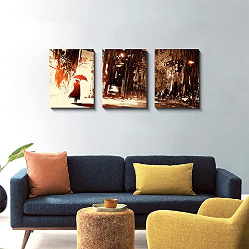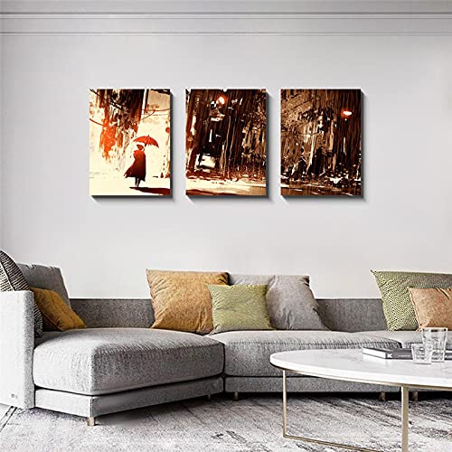 Urban Landschap Natural Abstract Wall Art Home Decor – Schilderij op doek Stad in de regen Poster ingelijst, 30 x 40 cm…